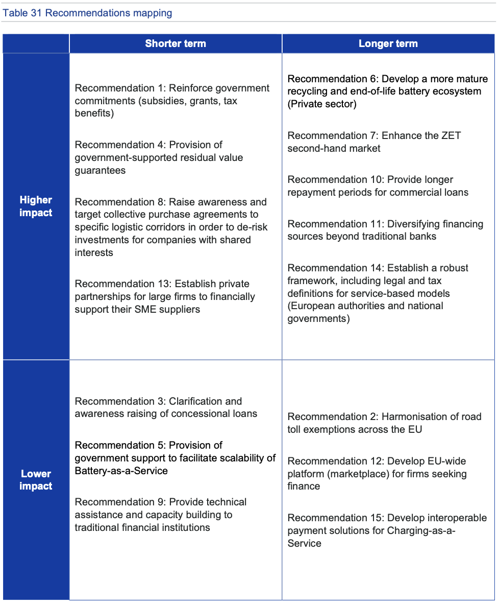 - Diversify Financing Sources: Recognising the limitations of conventional banking in accommodating the specific needs of ZET financing, the recommendations suggest exploring alternative sources such as pension funds and private equity, which may offer more favourable terms due to their long-term investment horizons.