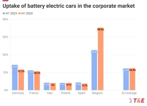 According to new data from Dataforce, released by Transport & Environment (T&E), companies in the EU are falling behind private households in adopting electric vehicles
