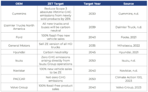 Major Original Equipment Manufacturers (OEMs) in the United States have committed to increasing sales of zero-emission trucks (ZETs) and achieving carbon neutrality, according to a
