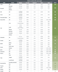Numerous manufacturers have outlined commitments to ZEV adoption, with variations in terms of timelines, geographic scope, vehicle types, and technology Benchmarks are established using estimates