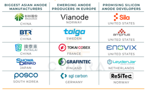 In the fast-growing battery anode market, Chinese companies Ningbo Shanshan, BTR New Energy Materials, and Shanghai Putailai New Energy Technology dominate with a 43% global