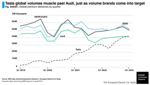 According to our exclusive research, Tesla surpassed a German volume premium manufacturer’s global delivery volumes during a quarter for the first time. AUDI AG is