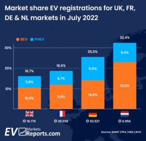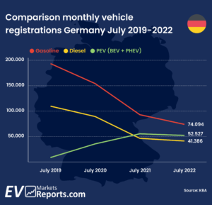 In July 2022, battery electric vehicles (BEV) accounted for 14% of the new registrations. BEV registrations increased by 13,2% in comparison to the same month