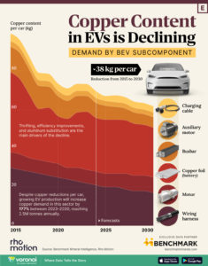 The rise of electric vehicles (EVs) has brought significant changes to the materials used in car manufacturing, with copper seeing a notable decline in use.