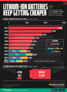 Lithium-ion batteries are getting cheaper as supply outpaces demand
