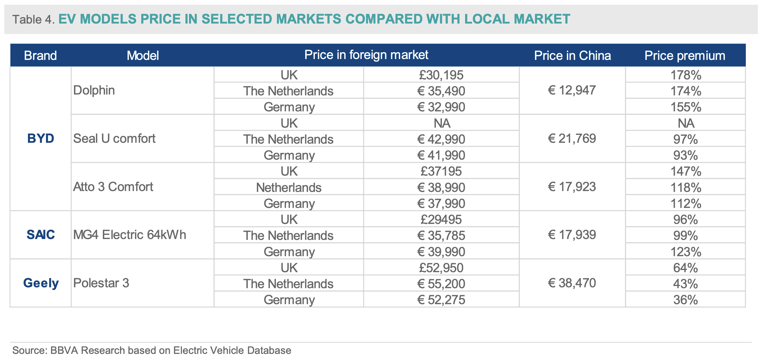 The report from BBVA Research is a thorough analysis of the dynamics of pricing and strategic positioning of Chinese EVs in world markets. Significant price premiums in Western Europe underline its relevance to Chinese manufacturers despite significant challenges that new tariffs will add. This period of uncertainty will continue to place the onus on Chinese automakers to find ways of negotiating these obstacles while keeping up their level of profitability and market share.